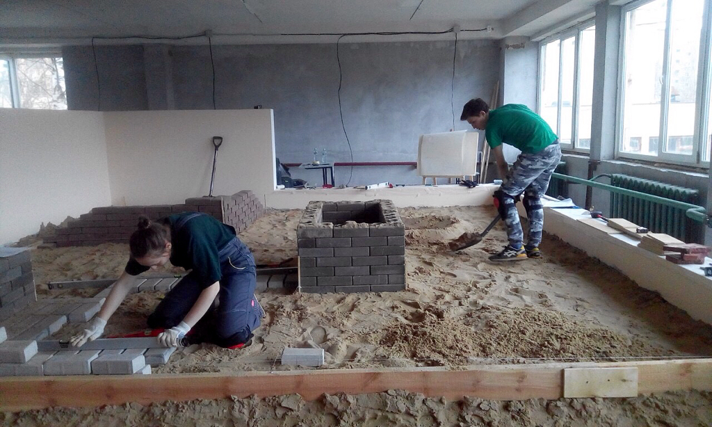 С 18 по 28 апреля 2016 ребята ежедневно по 8 часов отрабатывали конкурсные задания на базе ресурсного центра инновационных технологий в сельском хозяйстве, дорожном строительстве и транспорте (Московский областной профессиональный колледж инновационных технологий, Долгое Ледово). Особое внимание уделялось скорости выполнения работ, производилась отработка привязок разных элементов по проекту, строительство подпорной стенки, площадки, замеры площадки, строительство водоема.