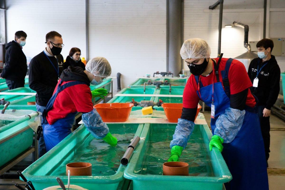 Участники церемонии открытия посетили площадки соревнований компетенций − «Выращивание рыбопосадочного материала и товарной рыбы» в инкубационном цехе филиала по пресноводному рыбному хозяйству ФГБНУ «ВНИРО» и «Обработка водных биоресурсов» в лабораторном корпусе Дмитровского рыбохозяйственного технологического института.